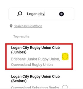 select ‘Logan City Rugby Union Club (Juniors)’ or ‘Logan City Rugby Union Club (Seniors)’