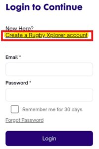 4. Click on ‘Create a Rugby Xplorer Account’