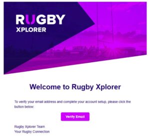 7. Rugby Xplorer will send you an email. Go to the email and click on Verify Email